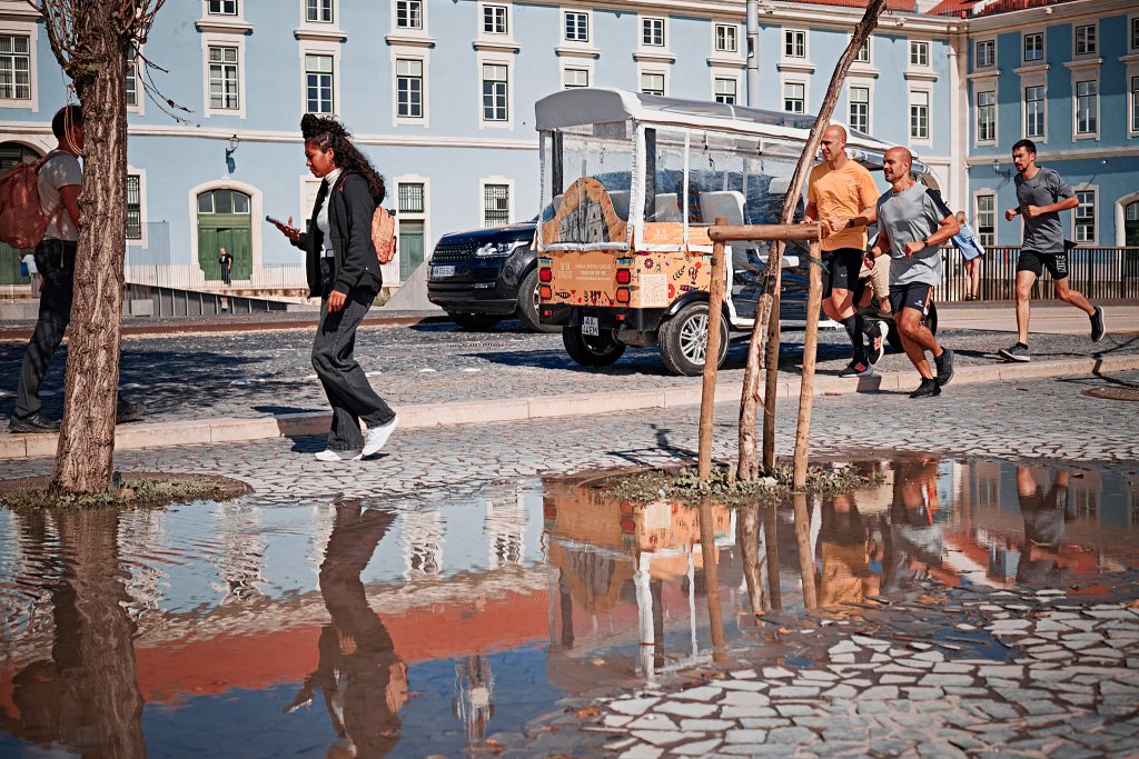 Flooding reflections along Av. Ribeira das Naus